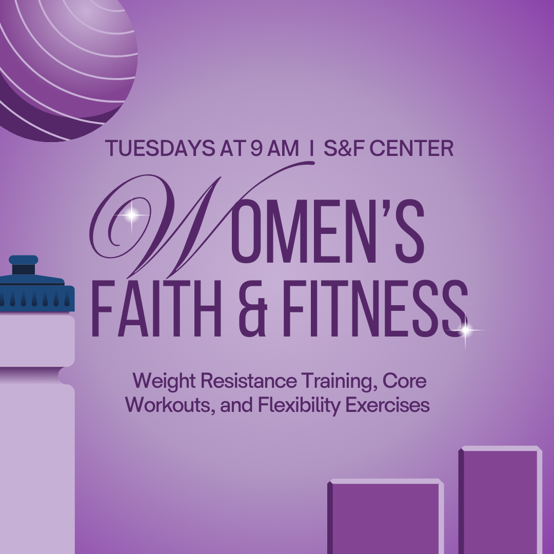 Women's Faith & Fitness Class | Details: This 45-minute class will provide cardio, weight resistance training, core work, as well as flexibility. The class can be performed standing or seated, and every fitness level is welcome. Please dress comfortably and bring your water. Led by Rachel Richey .